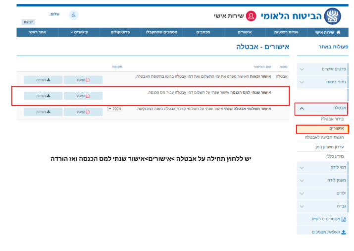 יש להעלות טפסים מתאימים בכל שנה בה התקבלו תקבולים מביטוח לאומי.