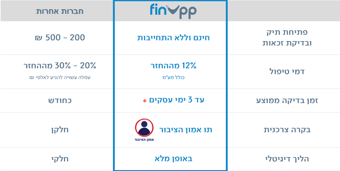 - התמחור מתייחס למתן שירותים במסגרת מסלול השירות הרגיל (מסלול "פינאפ") ולא במסגרת מסלול "פינאפ - Premium".
